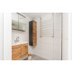 Das neue, moderne Badezimmer verfügt über eine Regendusche und ein Waschbecken.