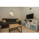 Im geschmackvollen, hellen Wohnzimmer befindet sich eine komfortable Sitzecke mit gemütlichem Kaminofen. Es gibt Digital TV mit vielen deutschen Sendern. Vom Wohnzimmer aus betreten die Terrasse mit einer Gartengruppe für vier Personen. Hier können Sie den Tag mit einem Frühstück in der Sonne beginnen und mit einem guten Glas Wein beim Grill abschließen.