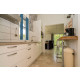 In der offenen Küche mit Frühstücksbar befinden sich unter anderem ein Induktionskochfeld, ein Geschirrspüler, ein Kühlschrank und eine Kombi-Mikrowelle. Im großen Abstellraum finden Sie noch eine Waschmaschine und einen Trockner.