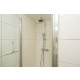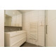 Das moderne Badezimmer verfügt über eine Dusche und ein Doppelwaschbecken. Es gibt eine separate Toilette.