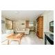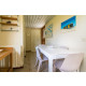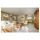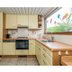 Die offene Küche ist großzügig ausgestattet, u.a. mit einem 4-Brenner-Gaskocher, einem Geschirrspüler, einer Kombi-Mikrowelle, einem Kühlschrank und einem Gefrierschank. Die Essgruppe eignet sich für 4 Personen.