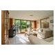 Im hellen Wohnzimmer befindet sich eine komfortable Sitzecke mit Smart TV, wo Sie eine Vielzahl von deutschen Programmen und Netflix (über Ihr eigenes Konto) empfangen können. Vom Wohnzimmer aus gelangen Sie durch die Schiebetür auf die Terrasse mit Gartenmöbeln. Hier können Sie Ihren Tag mit einem Frühstück in der Sonne beginnen. Nach einem Tag am Strand können Sie den Abend noch in einem der Liegestühle herrlich genießen. Selbstverständlich fehlt auch der Grill nicht.
