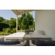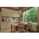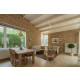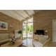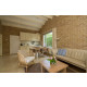 Im gemütlichen hellen Wohnzimmer mit Flügeltüren zu der überdachten Terrasse befindet sich eine komfortable Sitzecke und eine Essgruppe für vier Personen. Das Haus hat gratis WLAN und Digital-TV (Flachbildfernseher).