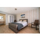 Im 1. Stock befindet sich noch ein Schlafzimmer mit 2 Einzel Boxspringbetten und einem Einzelbett. Es gibt ausreichend Schränke. Das zweite Badezimmer hat ebenfalls eine Regendusche, ein Badmöbel und eine Toilette.