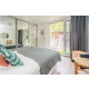 Der Bungalow hat 2 Schlafzimmer. Im Hauptschlafzimmer steht ein Doppelbett, im anderen Schlafzimmer stehen 2 Einzel Boxspringbetten. Es gibt ausreichend Schränke.