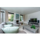 Im hellen, geschmackvoll eingerichteten Wohnzimmer befindet sich eine gemütliche Sitzecke mit Kamin. Es gibt SMART TV, wo Sie NETFLIX (über Ihr eigenes Konto) und eine Vielzahl von deutschen Sendern empfangen können. Die Schiebetür bietet vom Wohnzimmer aus Zugang zu der sonnigen Terrasse mit einer Gartengruppe, einem Grill und elektrischer Markise. Auf der zweiten Terrasse können Sie in der Loungeecke nach einem Tag am Strand den Sommerabend mit einem Drink ausklingen lassen.