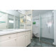 Das Badezimmer ist mit einer Dusche, einem Waschbecken und einer Toilette versehen. Im Flur gibt es noch eine separate Toilette.