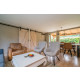 Het huisje is netjes en beschikt over alles wat je maar nodig hebt. De veranda en de loungeset zijn heerlijk.