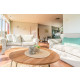 Im gemütlich eingerichteten, hellen Wohnzimmer befindet sich eine komfortable Sitzecke und eine Essgruppe für 6 Personen. Vom Wohnzimmer aus betreten Sie durch eine Schiebetür den Garten mit einer Gartensitzgruppe und Liegestühlen. In der gemütlichen mit Traubenpflanzen bedeckten Gartenlaube können Sie herrlich im Schatten sitzen. Selbstverständlich gibt es auch einen Grill, um den Tag stilvoll abzuschliessen.