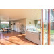 Die offene Küche ist mit einem 4-Brenner-Gaskocher, einer Kombi-Mikrowelle einem Kühl-/Gefrierschrank und einem Geschirrspüler ausgestattet.