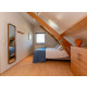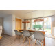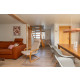 Die offene Küche ist mit allem Komfort ausgestattet, darunter ein Cerankochfeld, ein Backofen, ein Kühlschrank und eine Geschirrspülmaschine. In der Waschküche befinden sich die Waschmaschine und der Trockner. Darüber hinaus gibt es im Erdgeschoss ein Badezimmer mit Dusche, Waschbecken und Toilette.