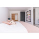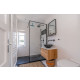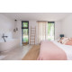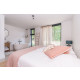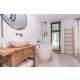 Das Hauptschlafzimmer, im Stil eines Boutique-Hotels, befindet sich im Erdgeschoss und verfügt über ein Doppelbett (2 Matratzen von 90x200) und ausreichend Schränke. Es ist mit einer freistehenden Badewanne, einer Regendusche mit Sunshower und einem Waschbecken ausgestattet. Im Flur befindet sich eine separate Toilette. Das Haus ist rollstuhlfreundlich.