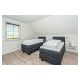 Über die Treppe gelangen Sie in den ersten Stock mit zwei geräumigen Schlafzimmern. Beide Schlafzimmern sind mit zwei Luxus Boxspring Einzelbetten und ausreichend Schränken ausgestattet. Auf dieser Etage finden Sie ein zusätzliches Badezimmer mit italienischer Dusche, Waschbecken Möbel und Toilette.