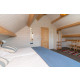 Im ersten Stock befinden sich 2 geräumige Schlafzimmer. Das erste Schlafzimmer hat ein Doppelbett, das auch als zwei separate Boxspringbetten von 90 x 200 cm konfiguriert werden kann. Das zweite Schlafzimmer hat 3 Einzel Boxspringbetten. Es gibt ausreichend Schränke.