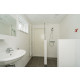 Das Hauptschlafzimmer befindet sich im Erdgeschoss und ist über das Wohnzimmer erreichbar. Dieses Schlafzimmer verfügt über ein Doppelbett (Boxspring) und ausreichend Schränke. Sowohl vom Flur als auch vom Schlafzimmer aus gelangen Sie ins neue Badezimmer. Dieses ist mit einer Dusche, einem Waschbecken und einer Toilette versehen. Im Flur befindet sich eine zweite Toilette.