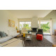 Durch den Flur gelangen Sie ins gemütlich eingerichtete, helle Wohnzimmer mit einer Essgruppe für 6 Personen. Im Wohnzimmer befindet sich auch eine gemütliche Sitzecke, wo Sie vor dem Kamin den Tag ausklingen lassen können. Vom Wohnzimmer aus betreten Sie durch die Schwingtüren die sonnige Terrasse mit einer Gartengruppe für sechs Personen und einem Grill. Nach einem Tag am Strand können Sie im geräumigen Garten (425 m2) auf einem der Liegestühle oder in der Hängematte herrlich entspannen.