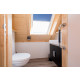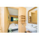 Über den geräumigen Flur gelangen Sie in das Hauptschlafzimmer mit 2 Luxus Einzel Boxspringbetten (90x210). Das angrenzende Badezimmer verfügt über eine Dusche und ein Waschbecken. Im Flur befindet sich eine separate Toilette.