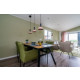 In der großzügig eingerichteten offenen Küche befinden sich eine Einbaukochstelle mit 4 Induktionskochfeldern, eine Kühl-/Gefrierkombination, eine Kombi-Mikrowelle und eine Geschirrspülmaschine.