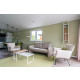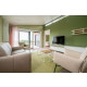 Im sehr gemütlichen und hellen Wohnzimmer, mit einer Schiebewand zur Terrasse, befinden sich eine gemütliche Sitzecke mit einem Zweisitzer und zwei Luxus-Sesseln. Die Essgruppe eignet sich für vier Personen. Das Haus hat gratis WLAN und Digital-TV mit vielen ausländischen Sendern.